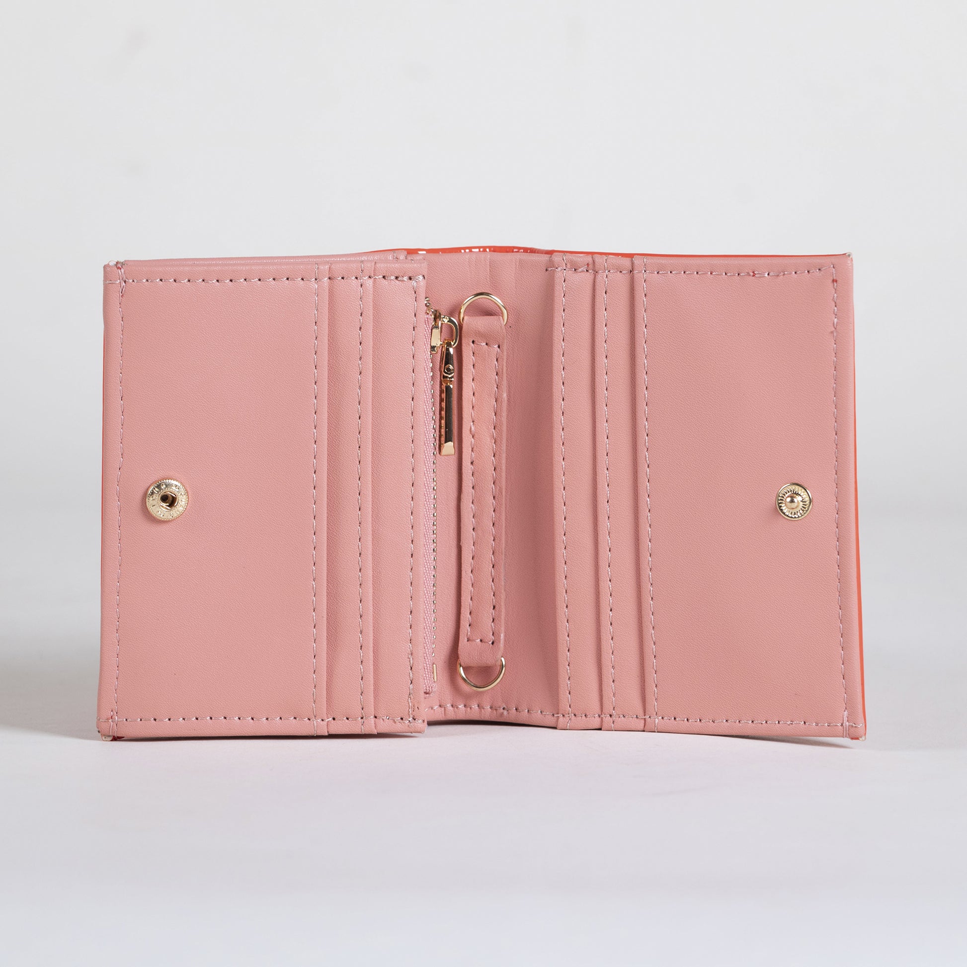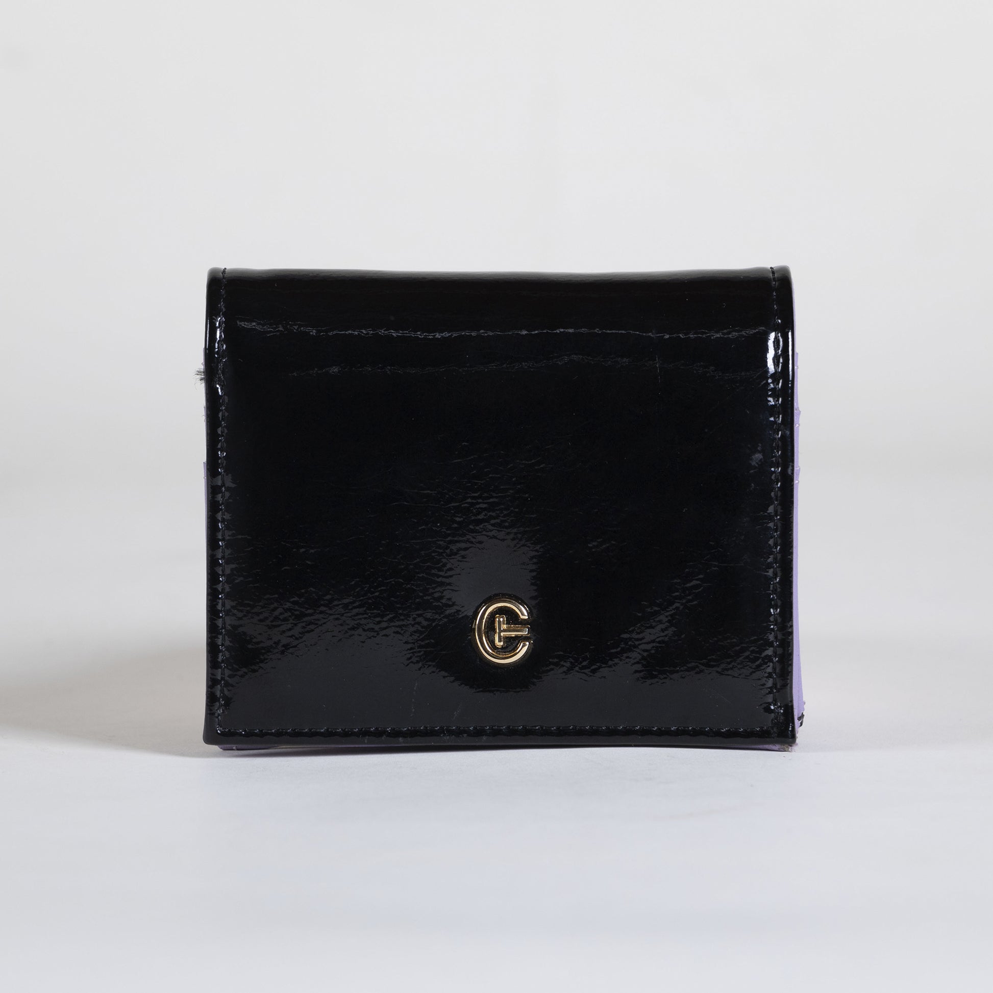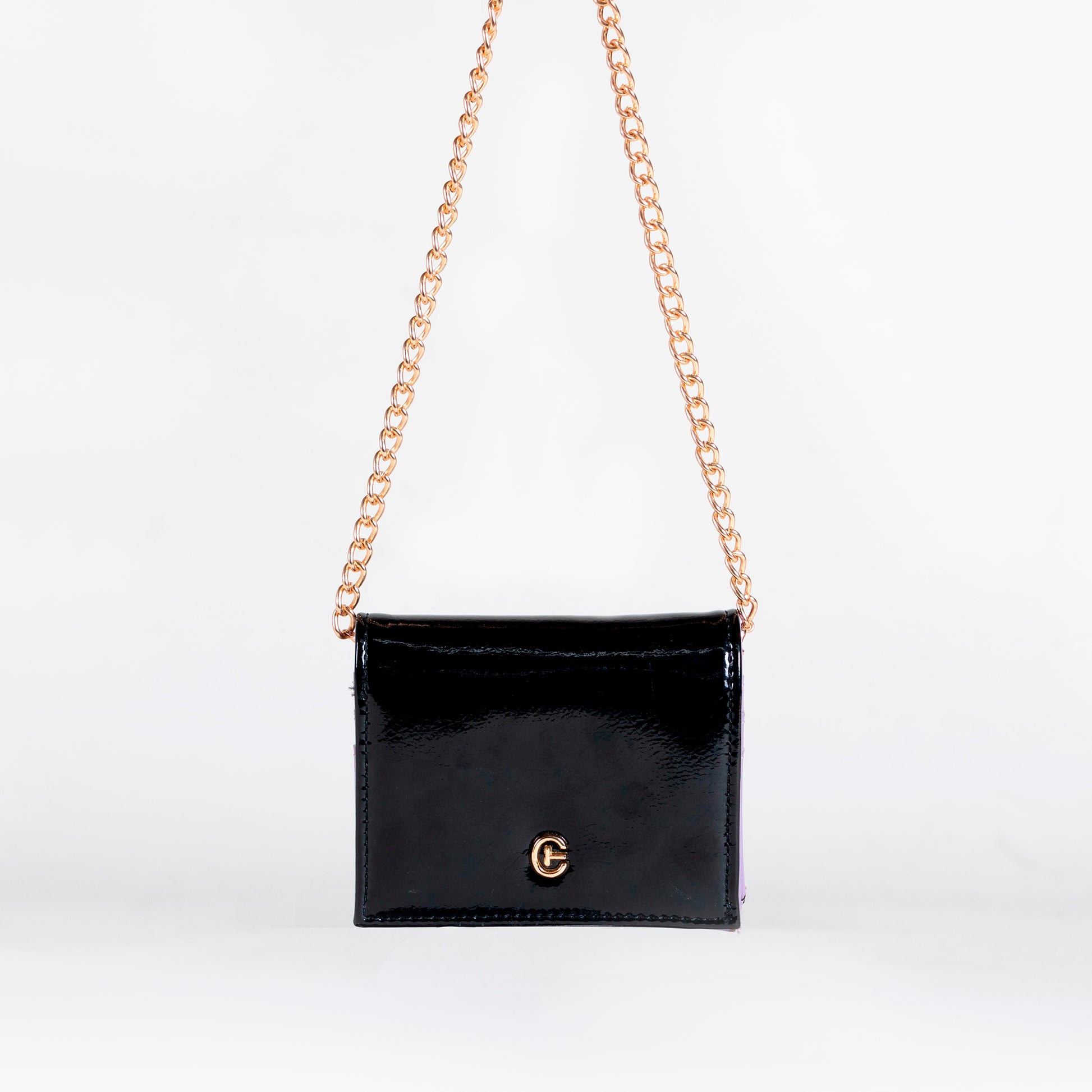 Cartera con cadena removible, espacio para monedas y tarjetas.