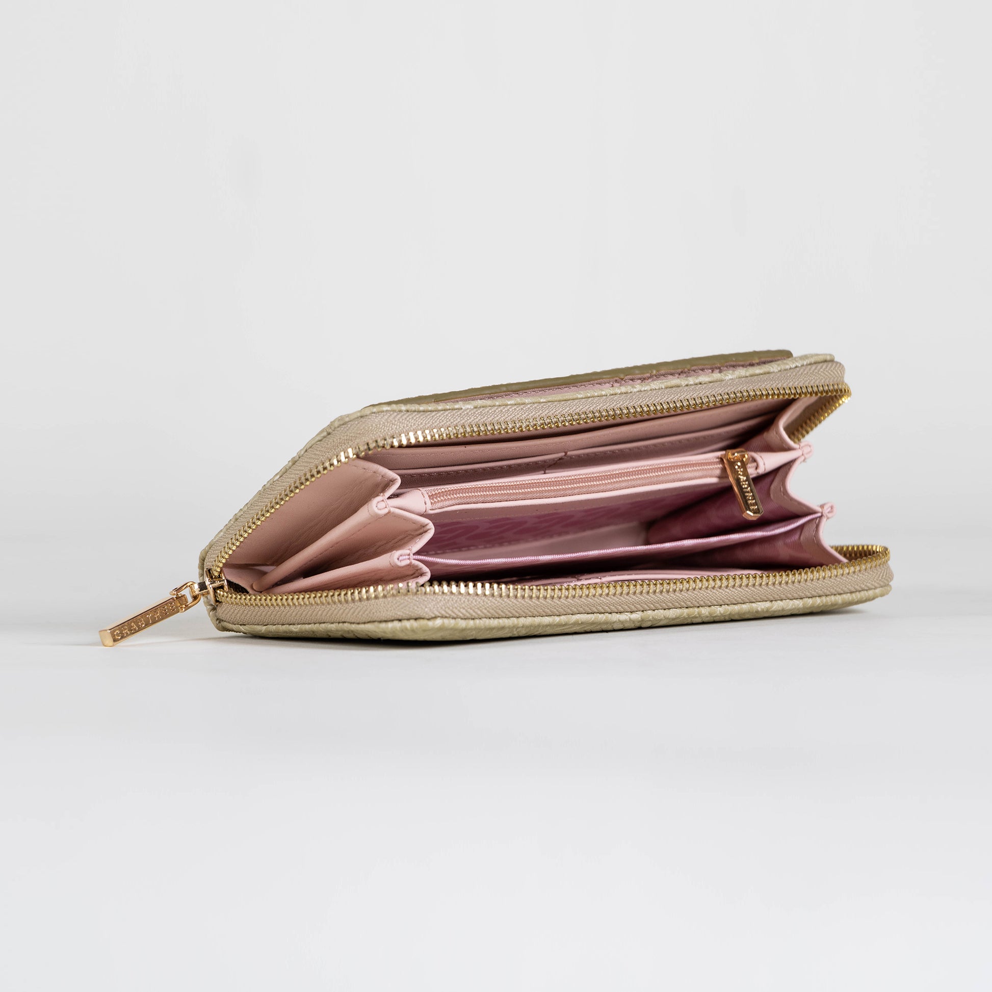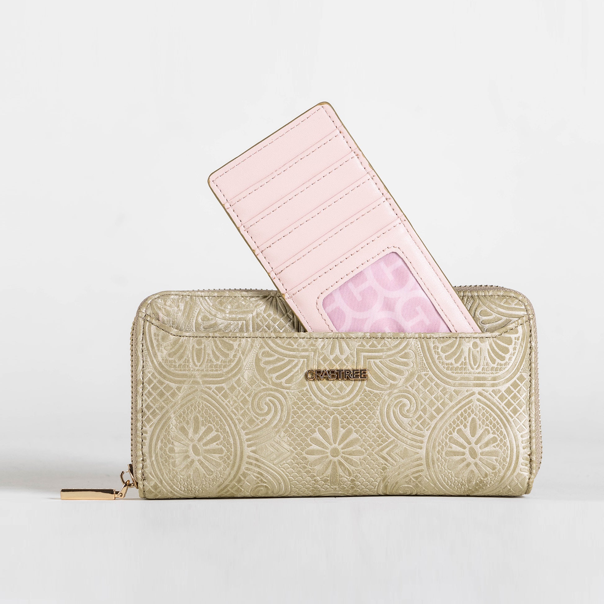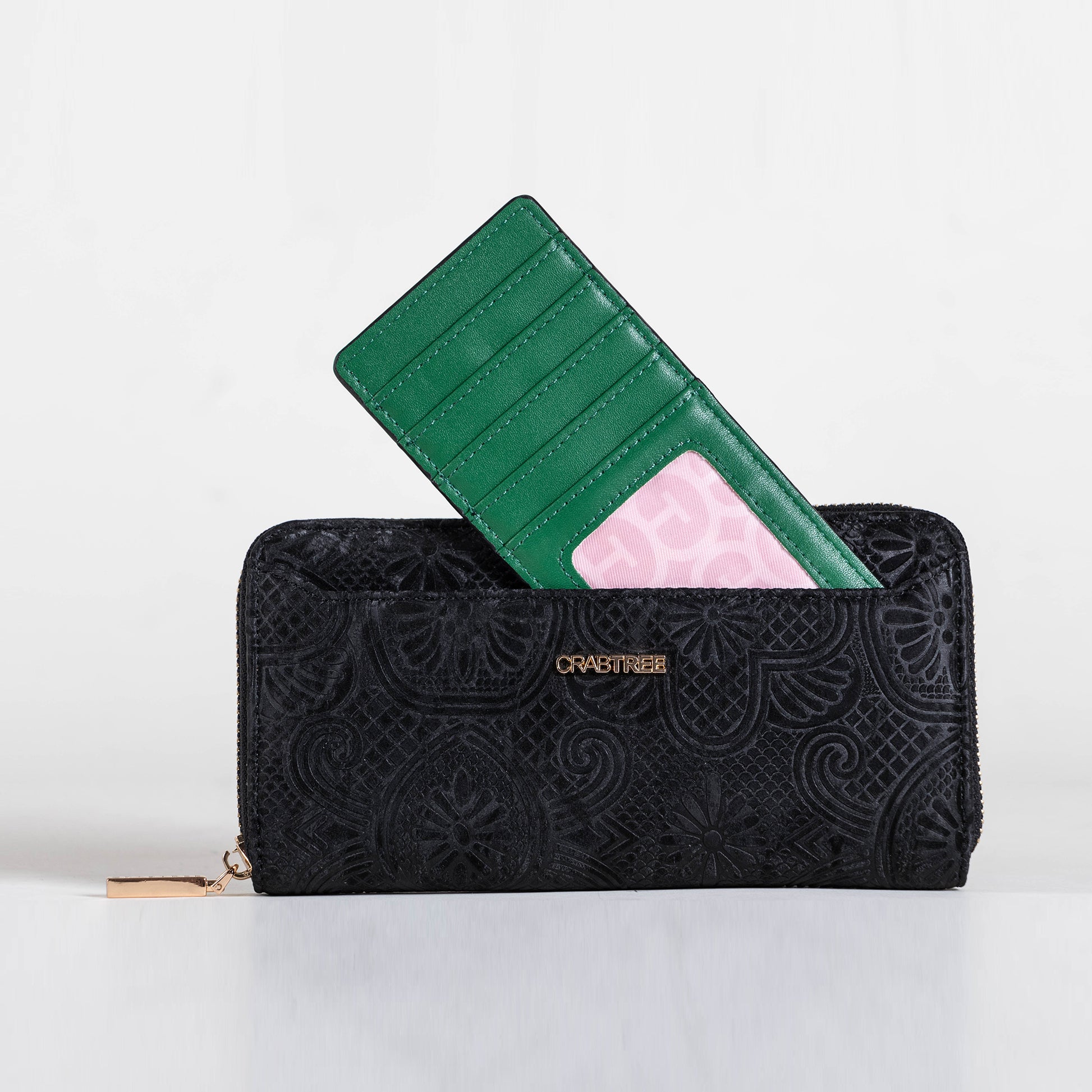 Cartera mediana con cierre, incluye un tarjetero y espacio para monedas.