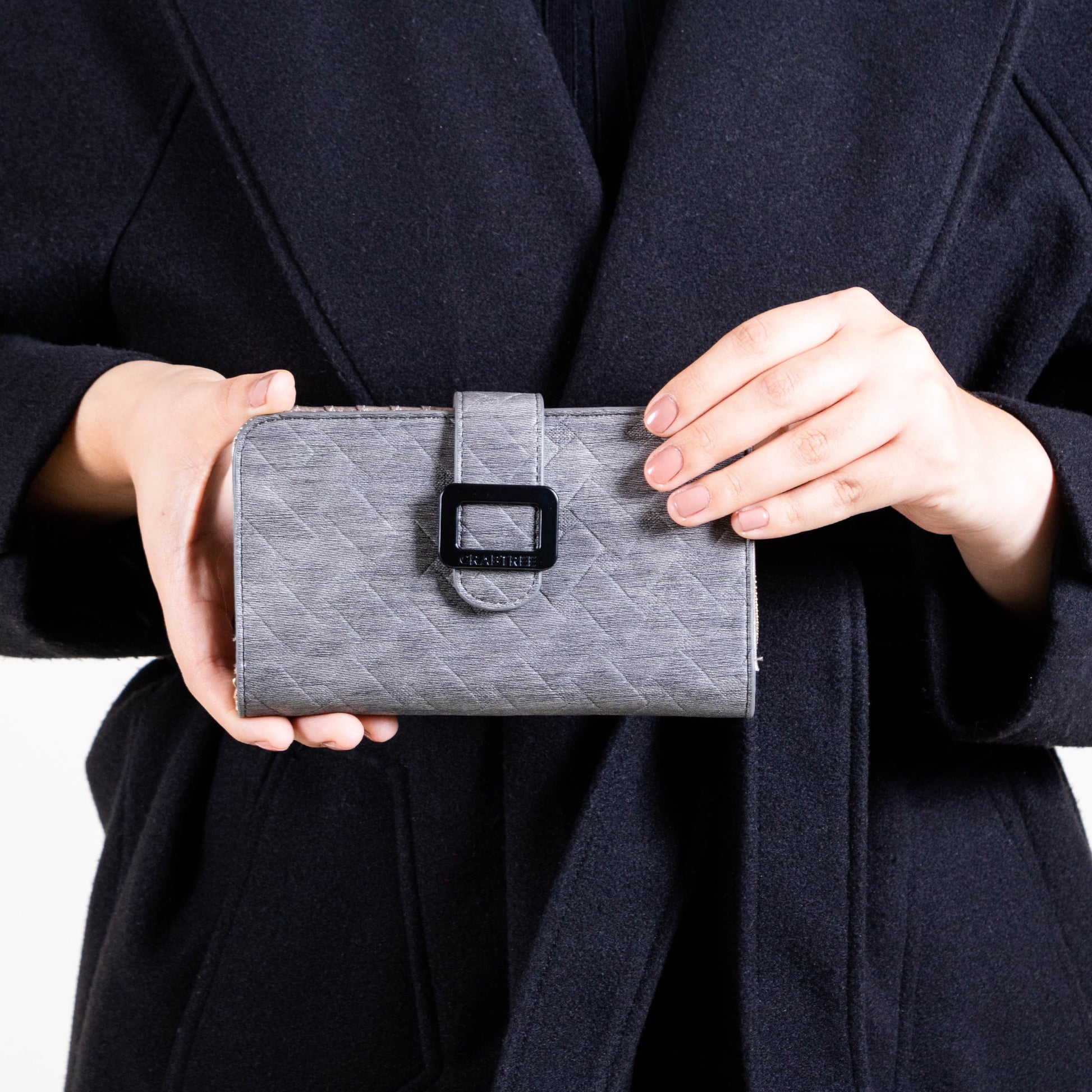 Cuenta con solapa frontal y detalle de hebilla rectangular decorativa que le da un toque moderno y sofisticado. Ideal para organizar tus esenciales con elegancia y practicidad.