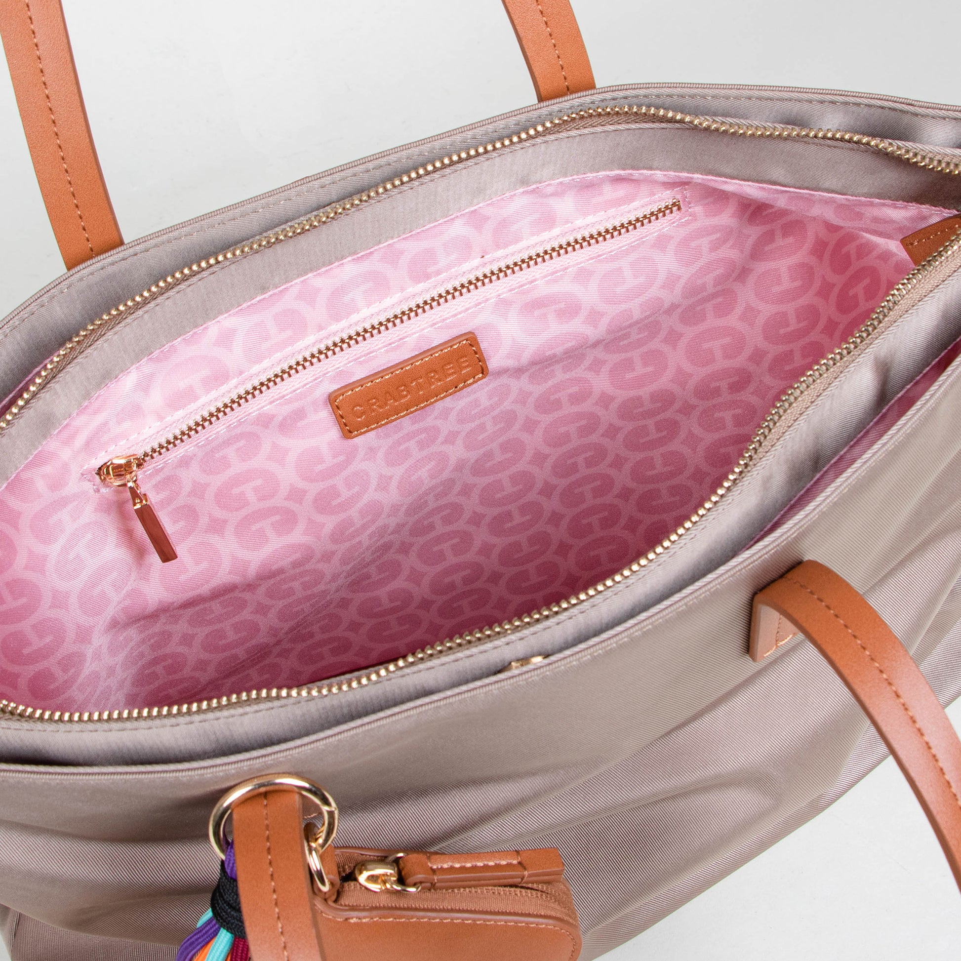 Disfruta de la elegancia y exclusividad con nuestro bolso TOTE. Hecho de nylon resistente, cuenta con un bolsillo interno y un estuche removible para mantener tus pertenencias organizadas. El forro en contraste agrega un toque de sofisticación. Cuenta con un bolsillo principal con cierre y dos bolsillos laterales con broche imán