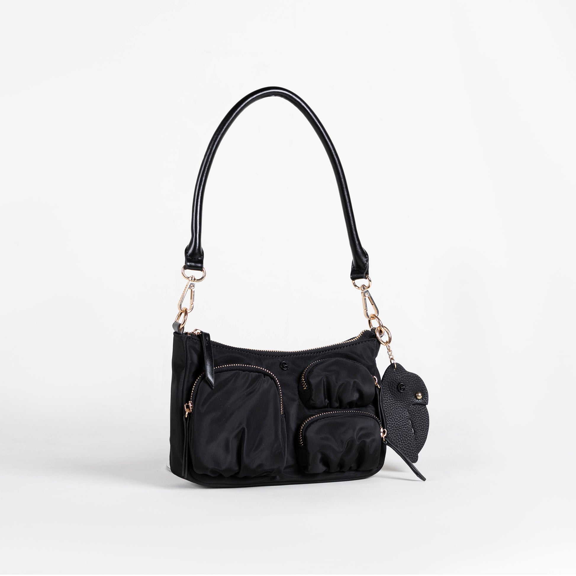Bolso crossbody con asa corta y asa adicional ajustable.