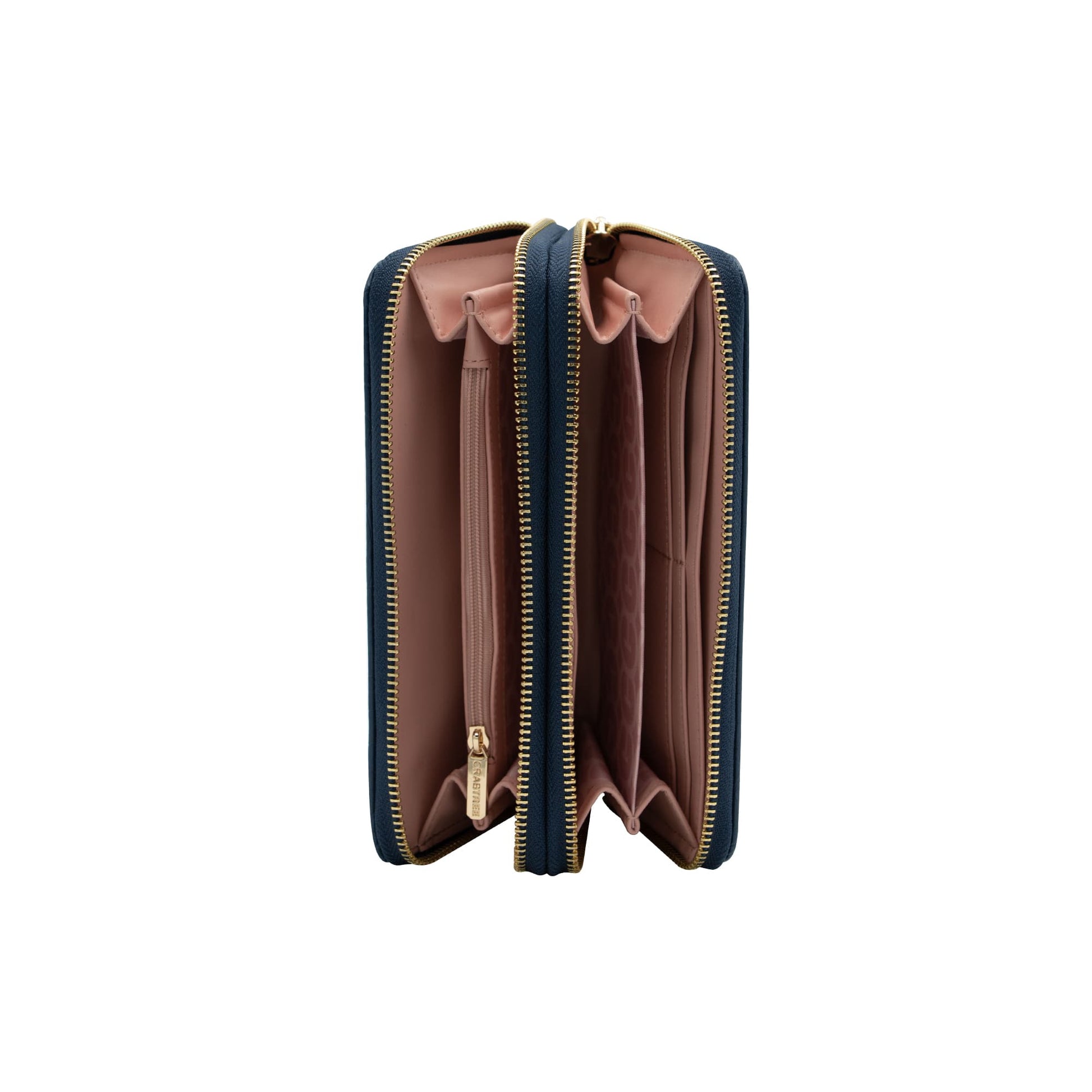 Cartera de doble cierre diseñada para combinar estilo y funcionalidad. Incluye un herraje metálico decorativo en el frente, compartimentos para tarjetas y un compartimento adicional con cierre. Perfecta para mantener tus esenciales organizados con elegancia