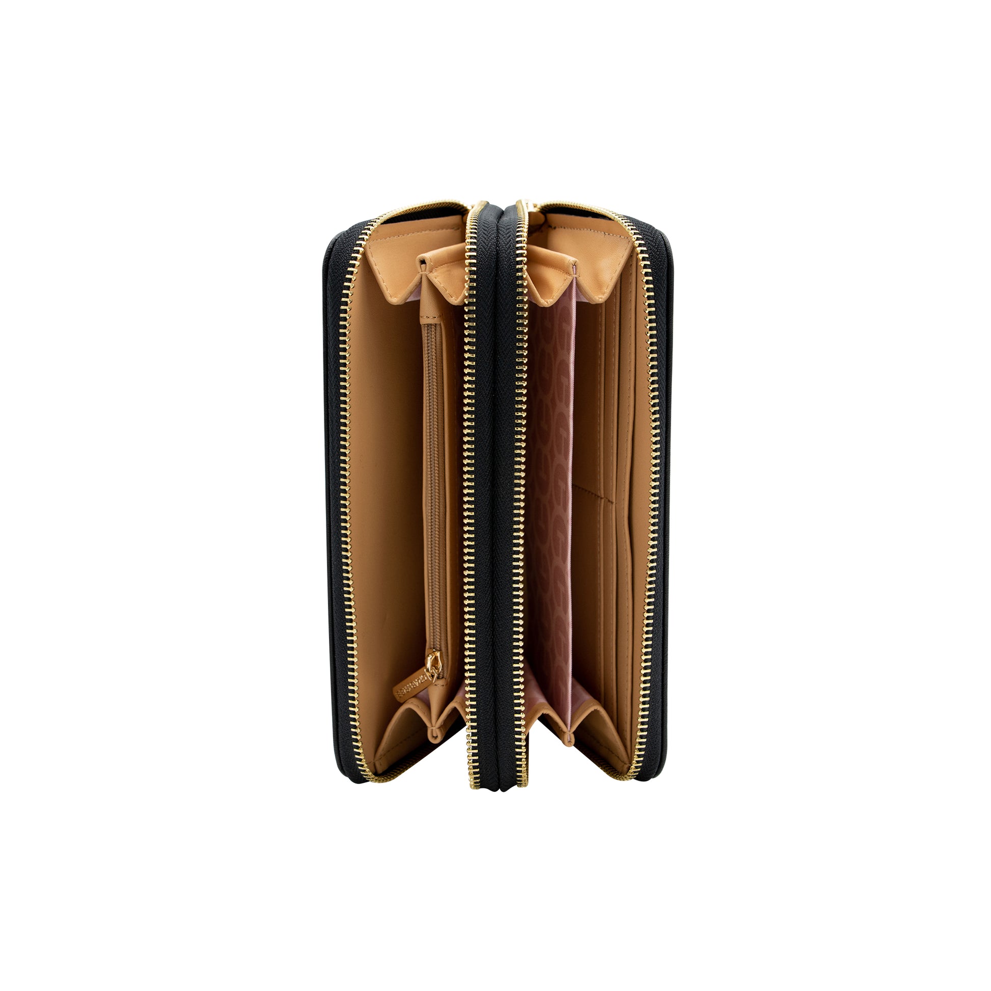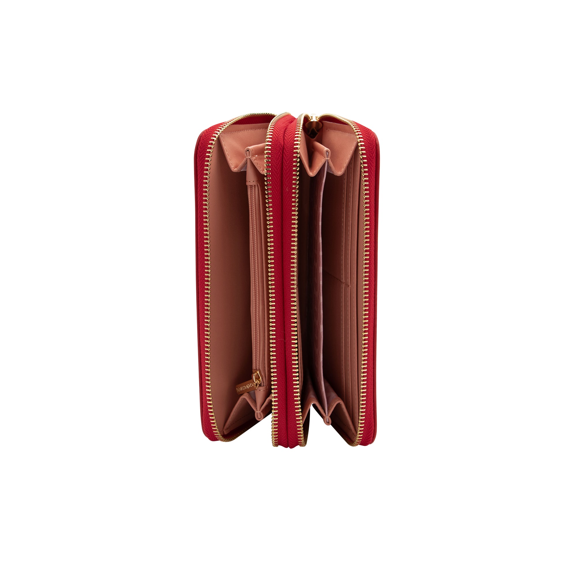 Cartera de doble cierre diseñada para combinar estilo y funcionalidad. Incluye un herraje metálico decorativo en el frente, compartimentos para tarjetas y un compartimento adicional con cierre. Perfecta para mantener tus esenciales organizados con elegancia.