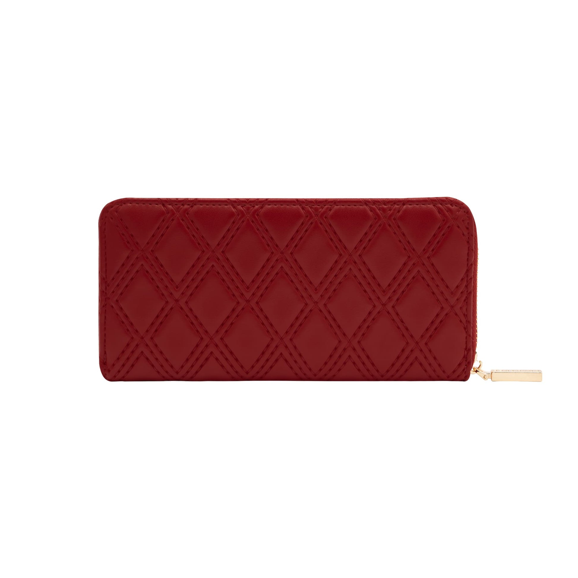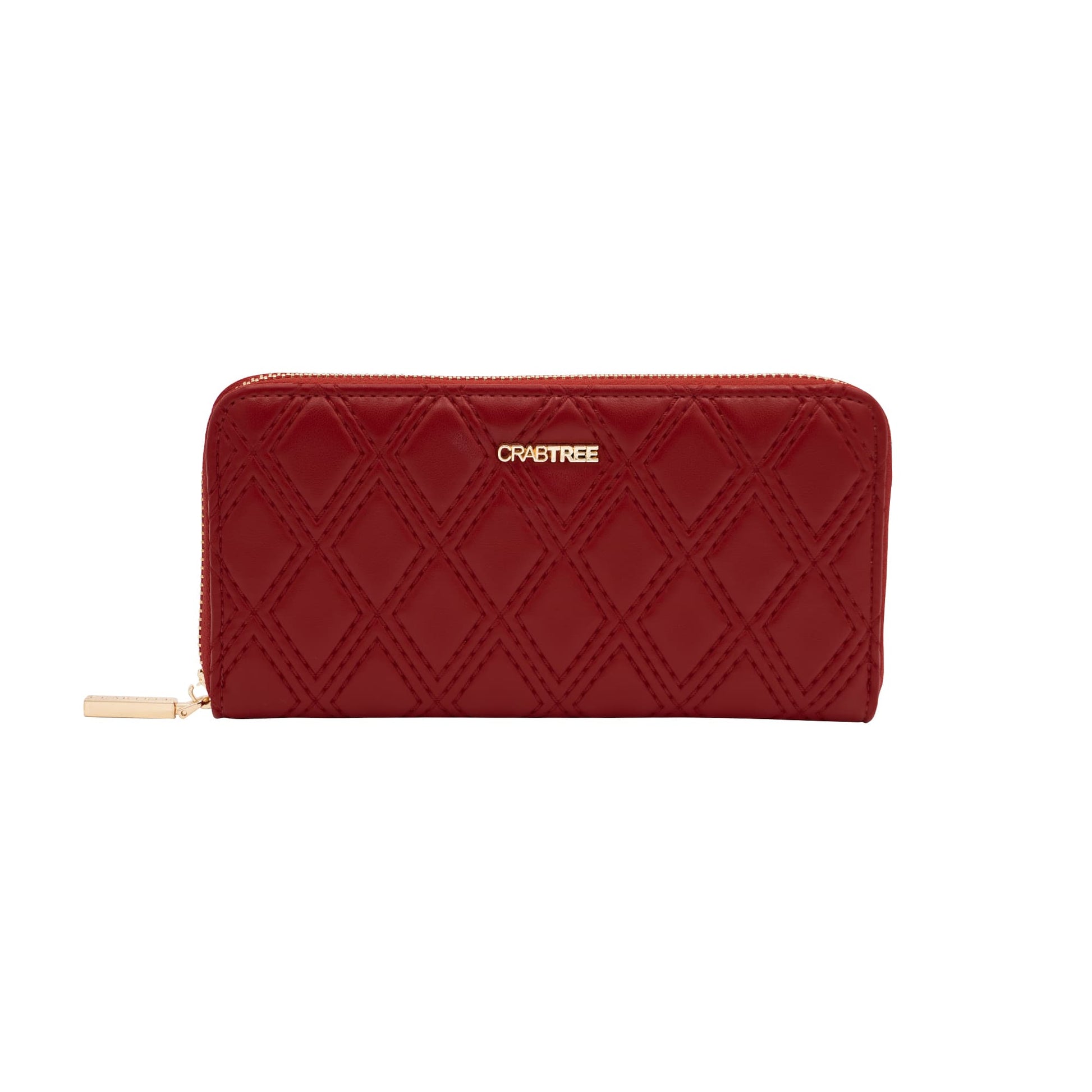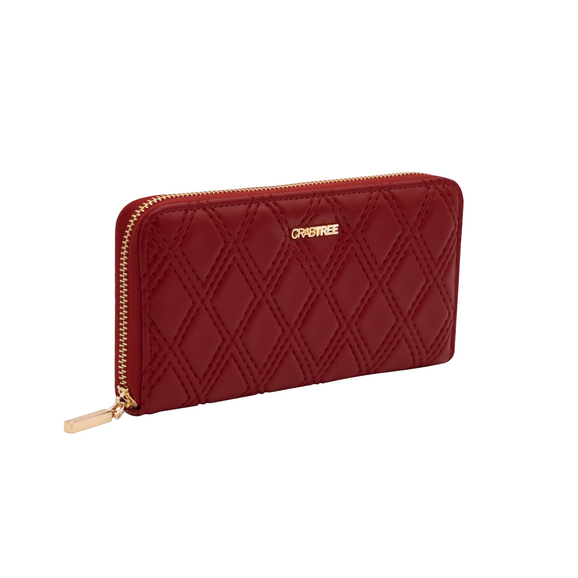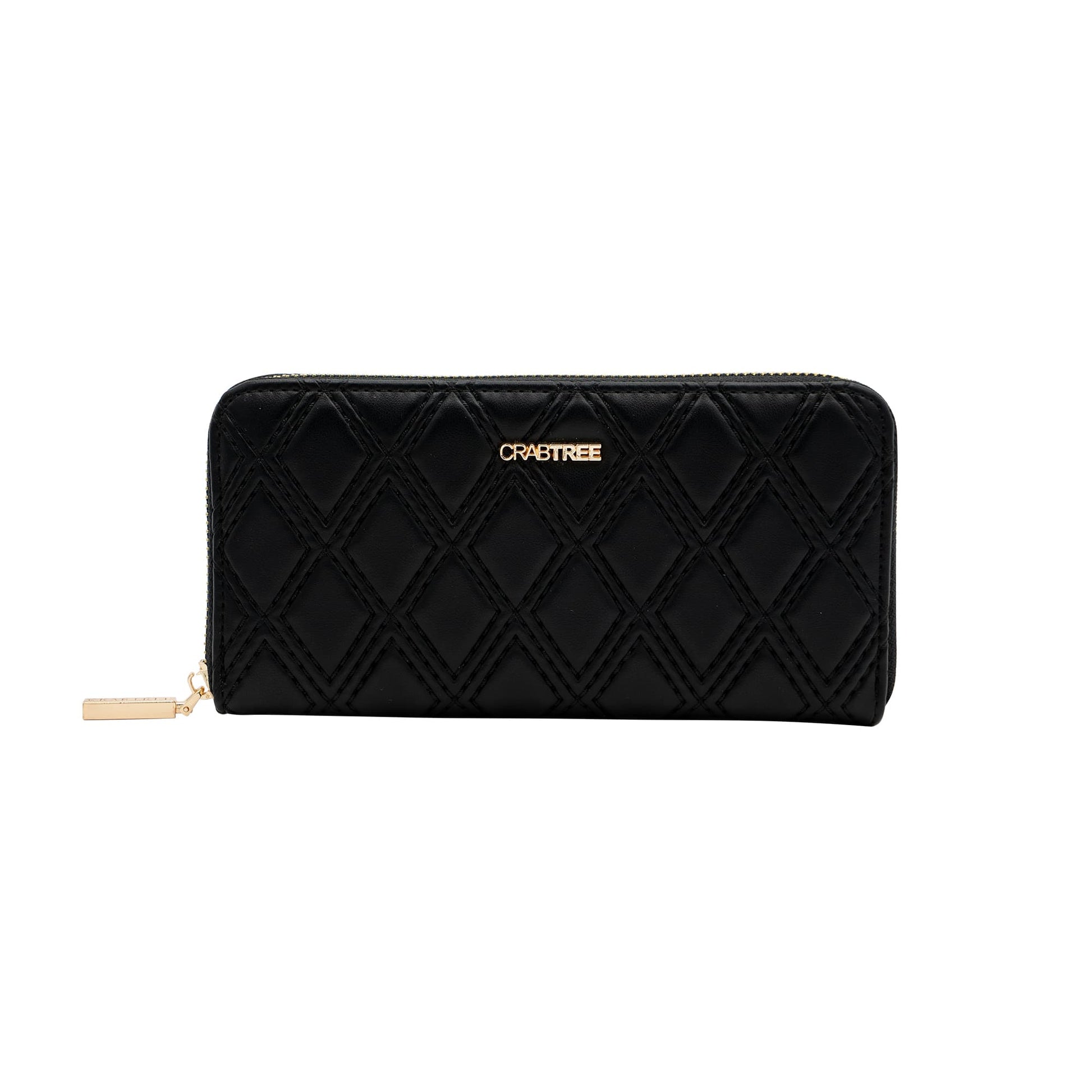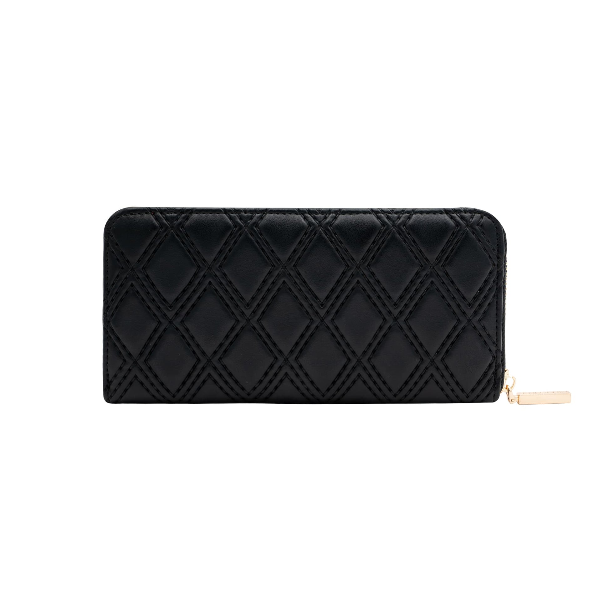 Cartera de doble cierre con un elegante diseño de rombos. Cuenta con compartimentos para tarjetas y un compartimento adicional con cierre, ofreciendo estilo y funcionalidad en un solo accesorio.