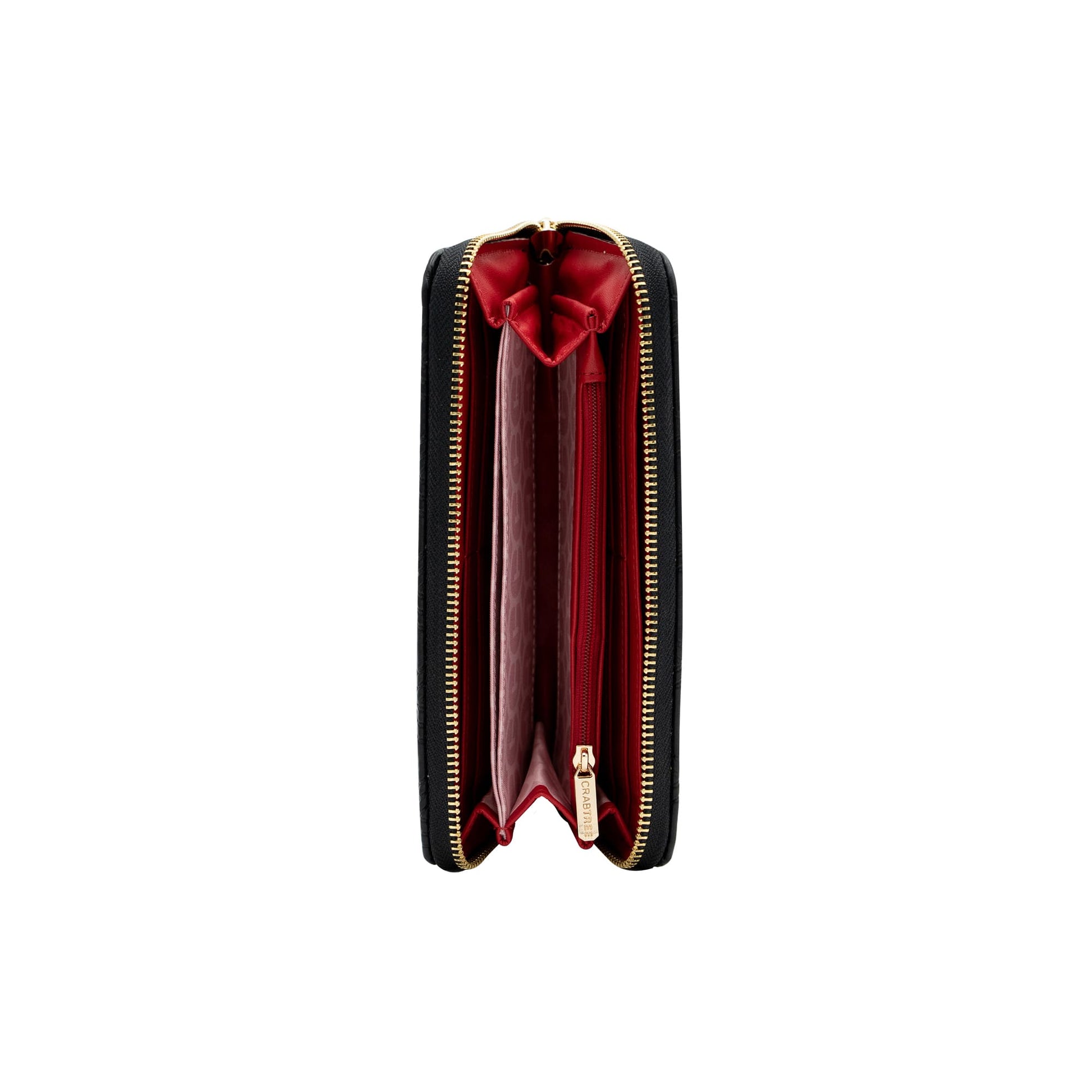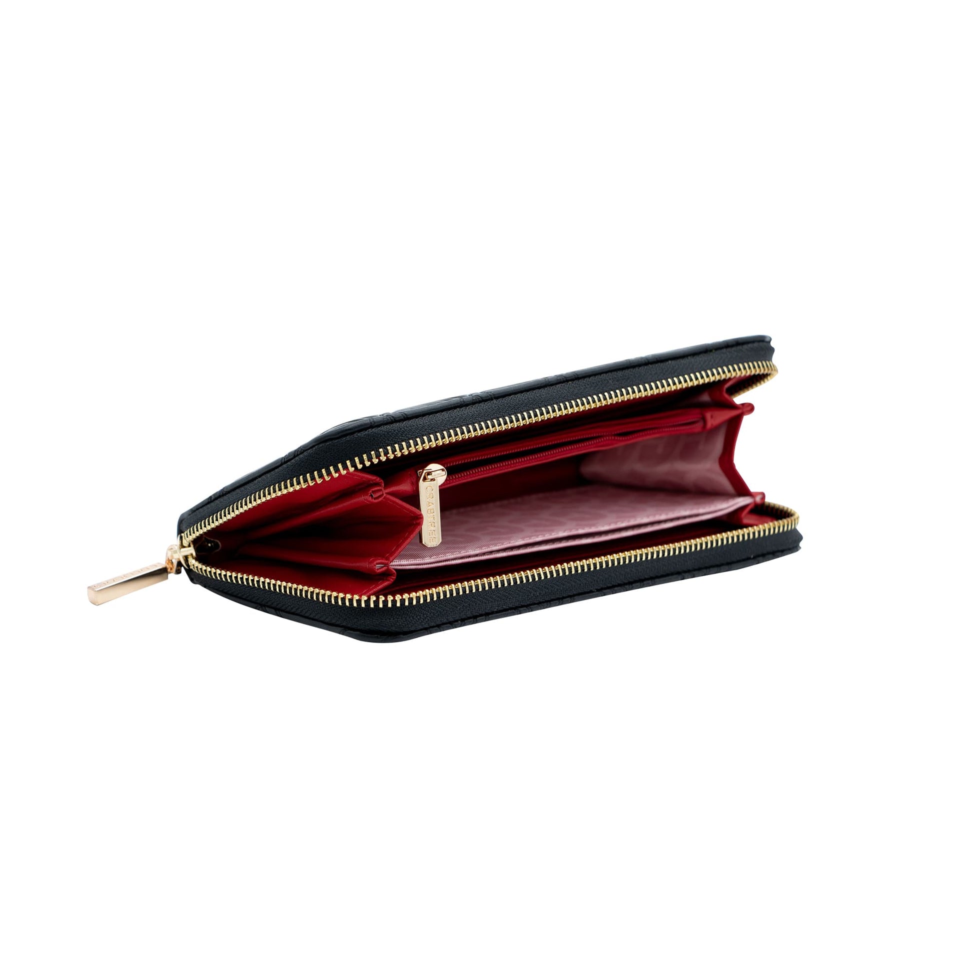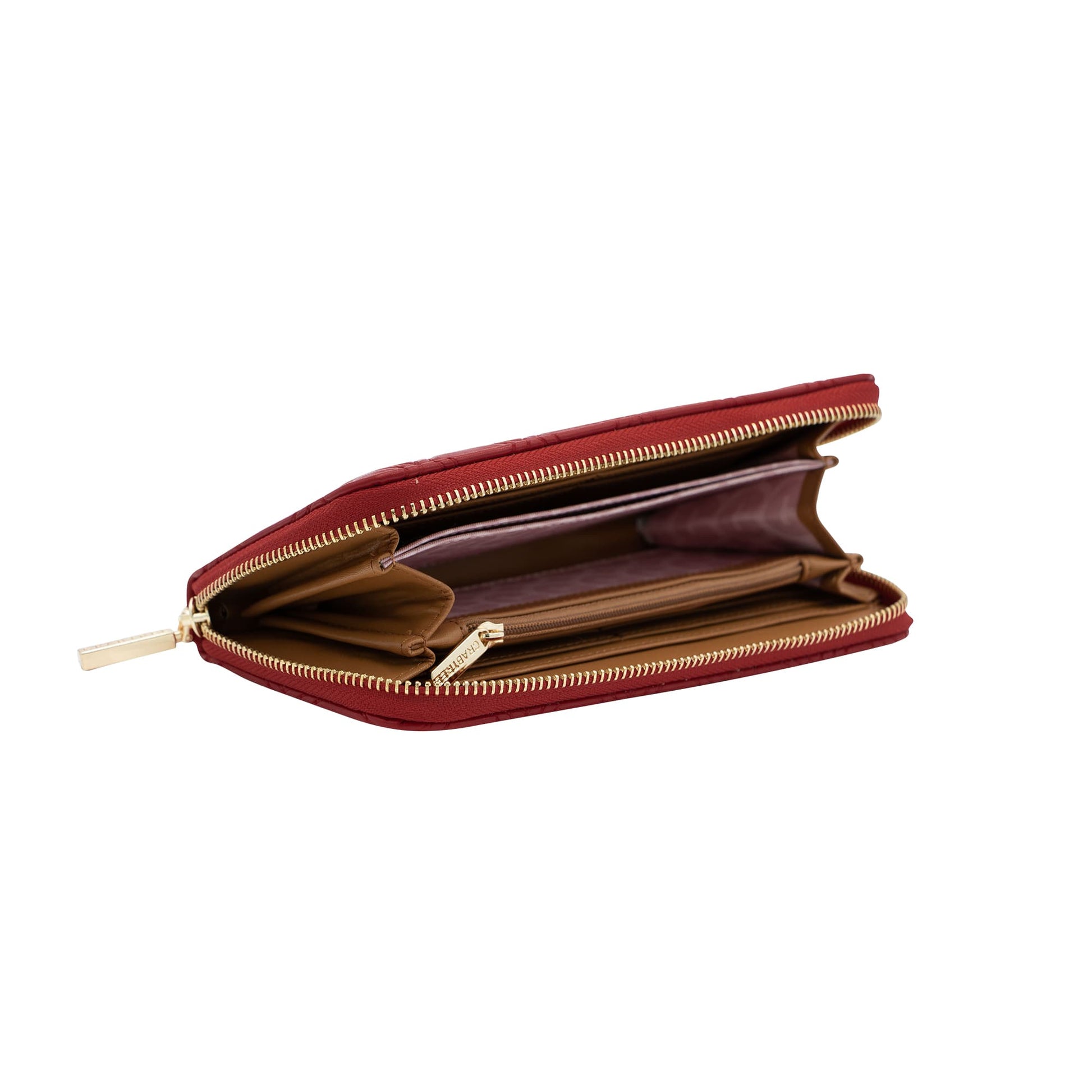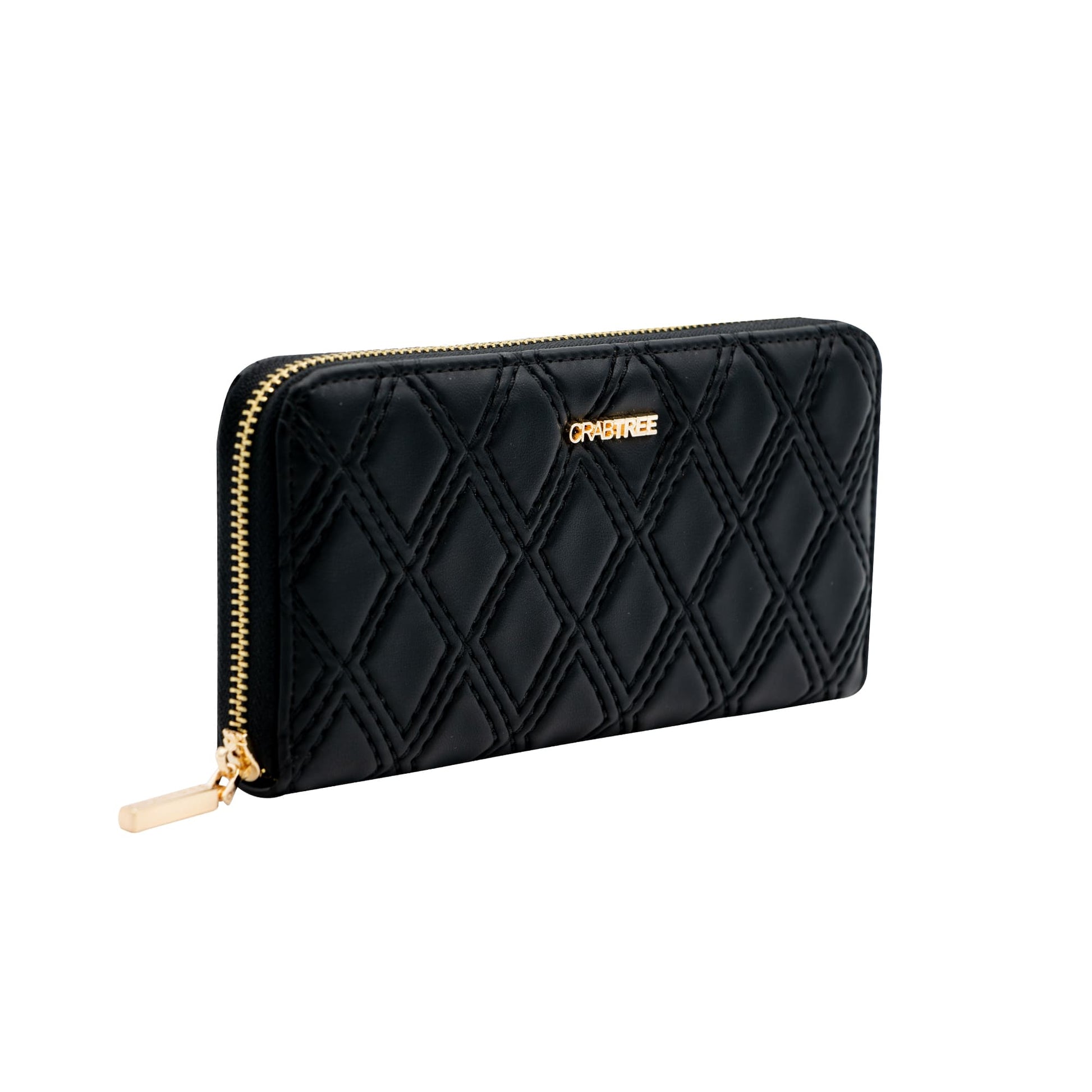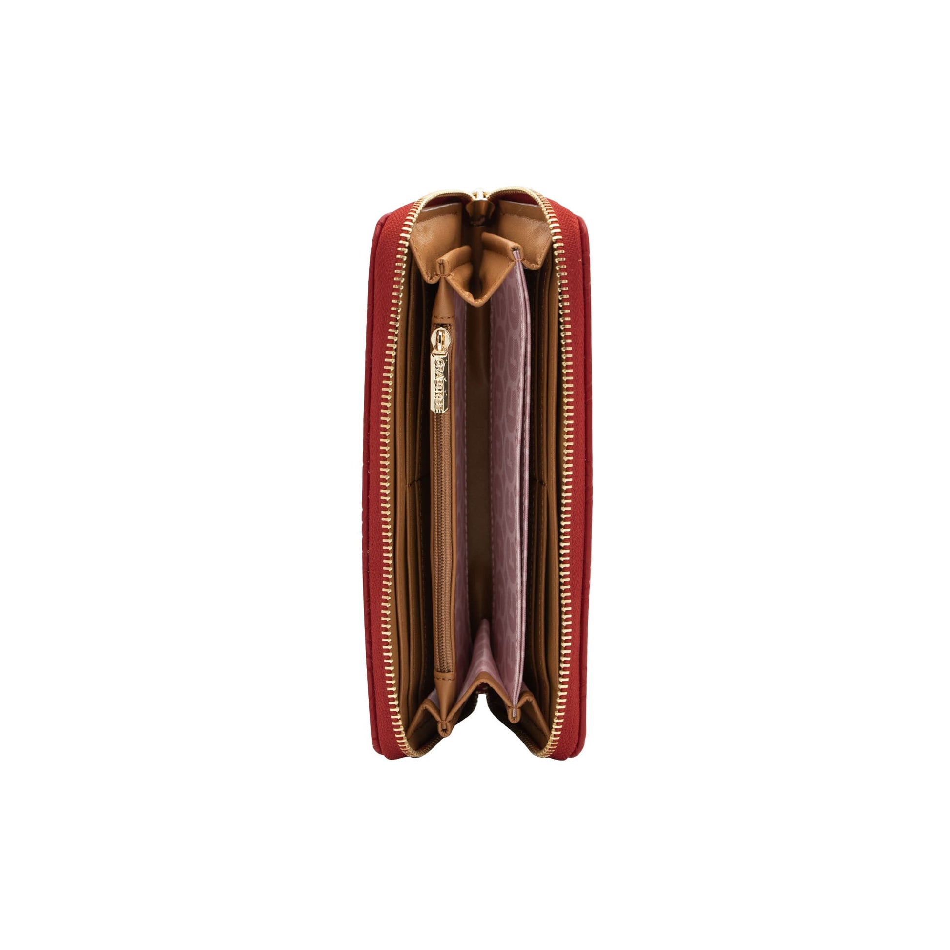 Cartera de doble cierre con un elegante diseño de rombos. Cuenta con compartimentos para tarjetas y un compartimento adicional con cierre, ofreciendo estilo y funcionalidad en un solo accesorio.