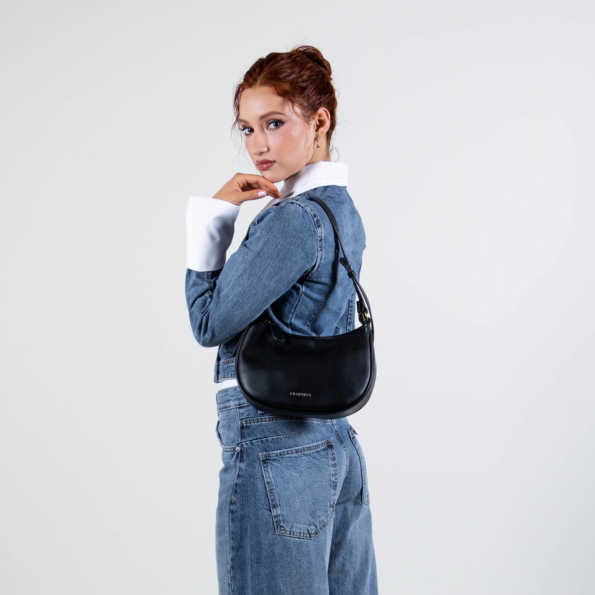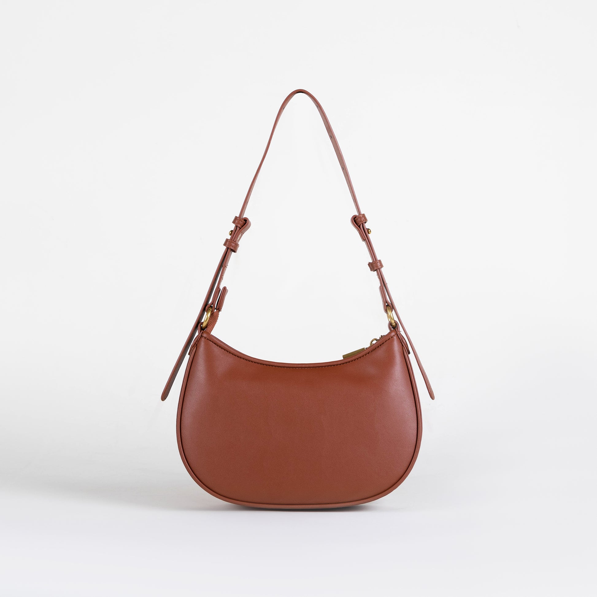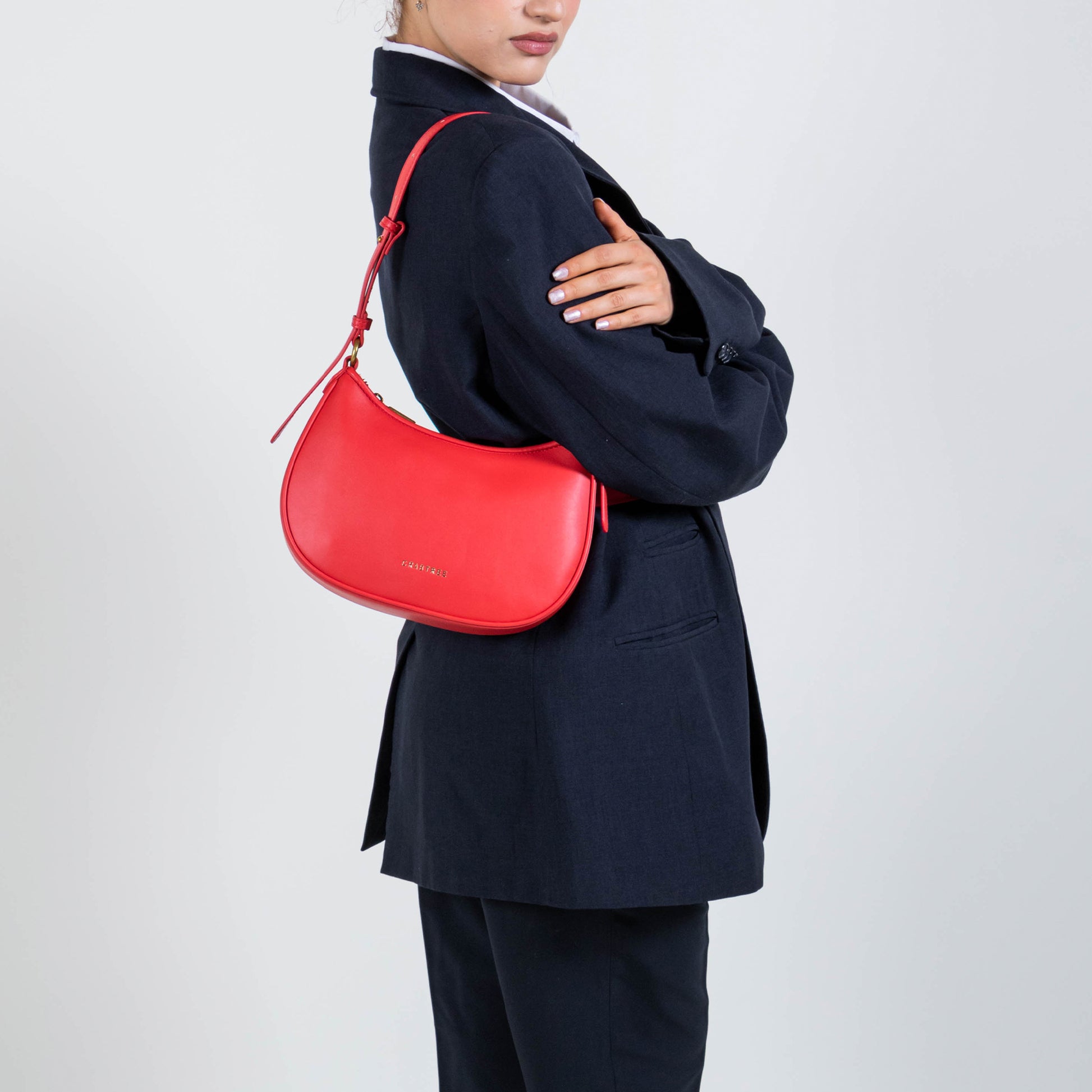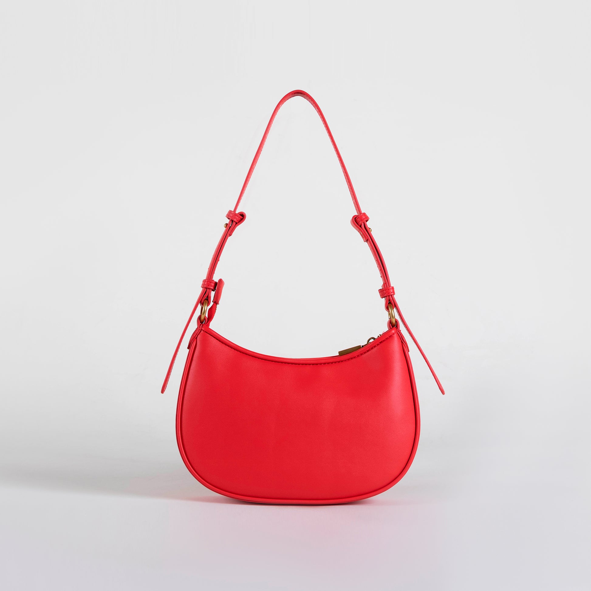 Bolso pequeño de hombro con una asa ajustable y cierre en la parte superior.