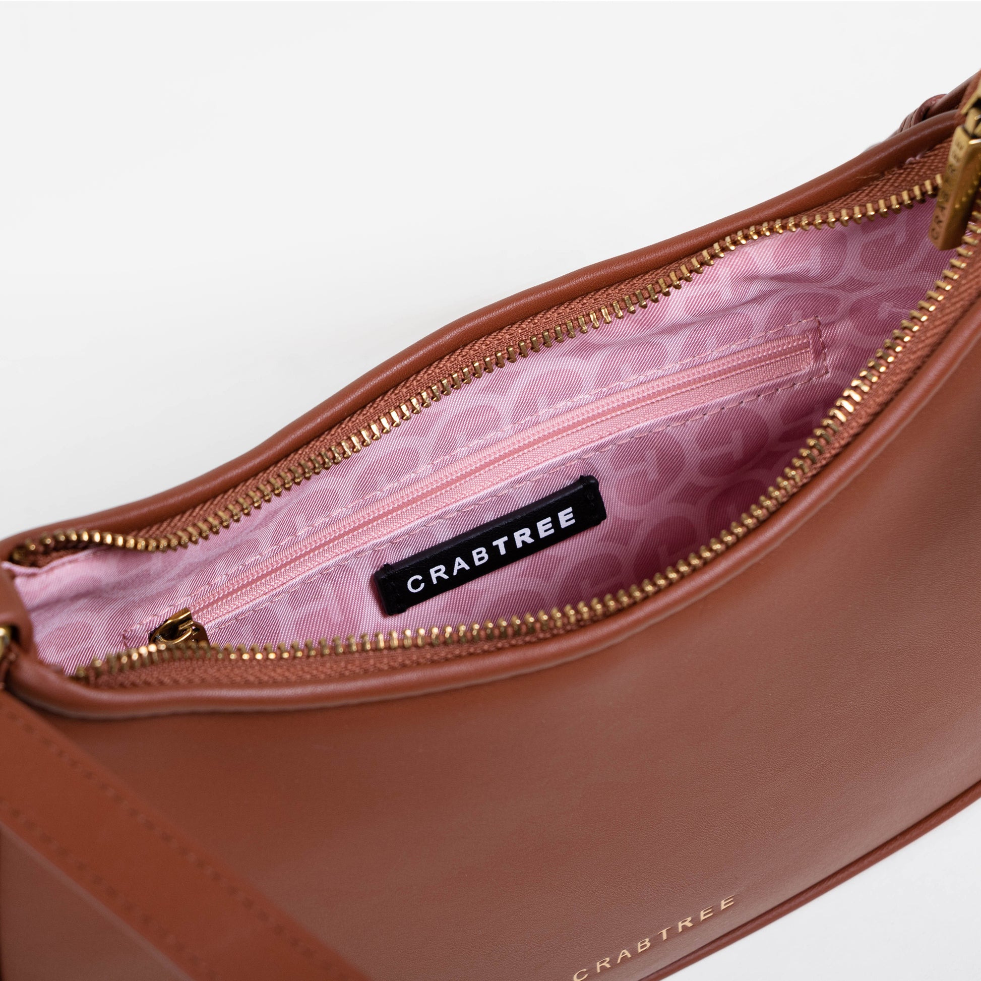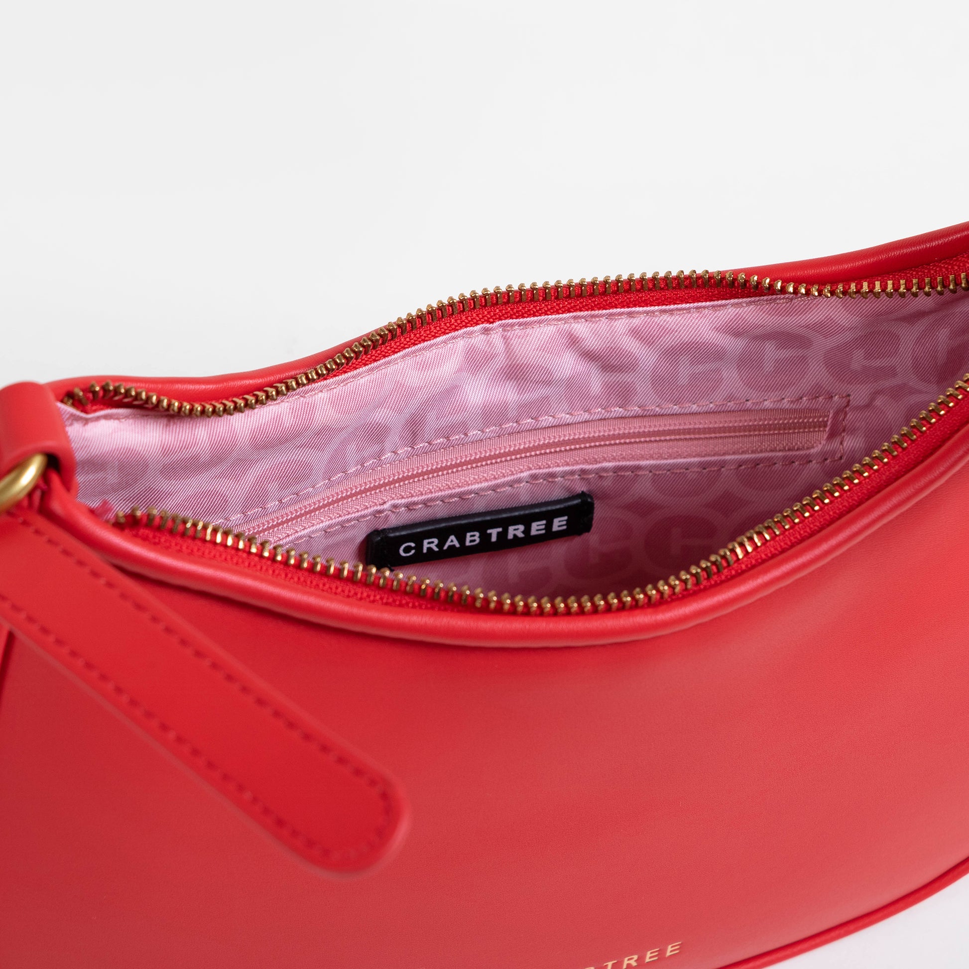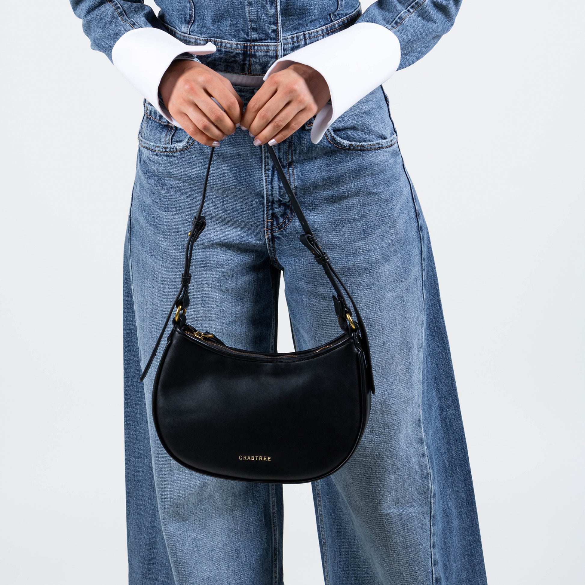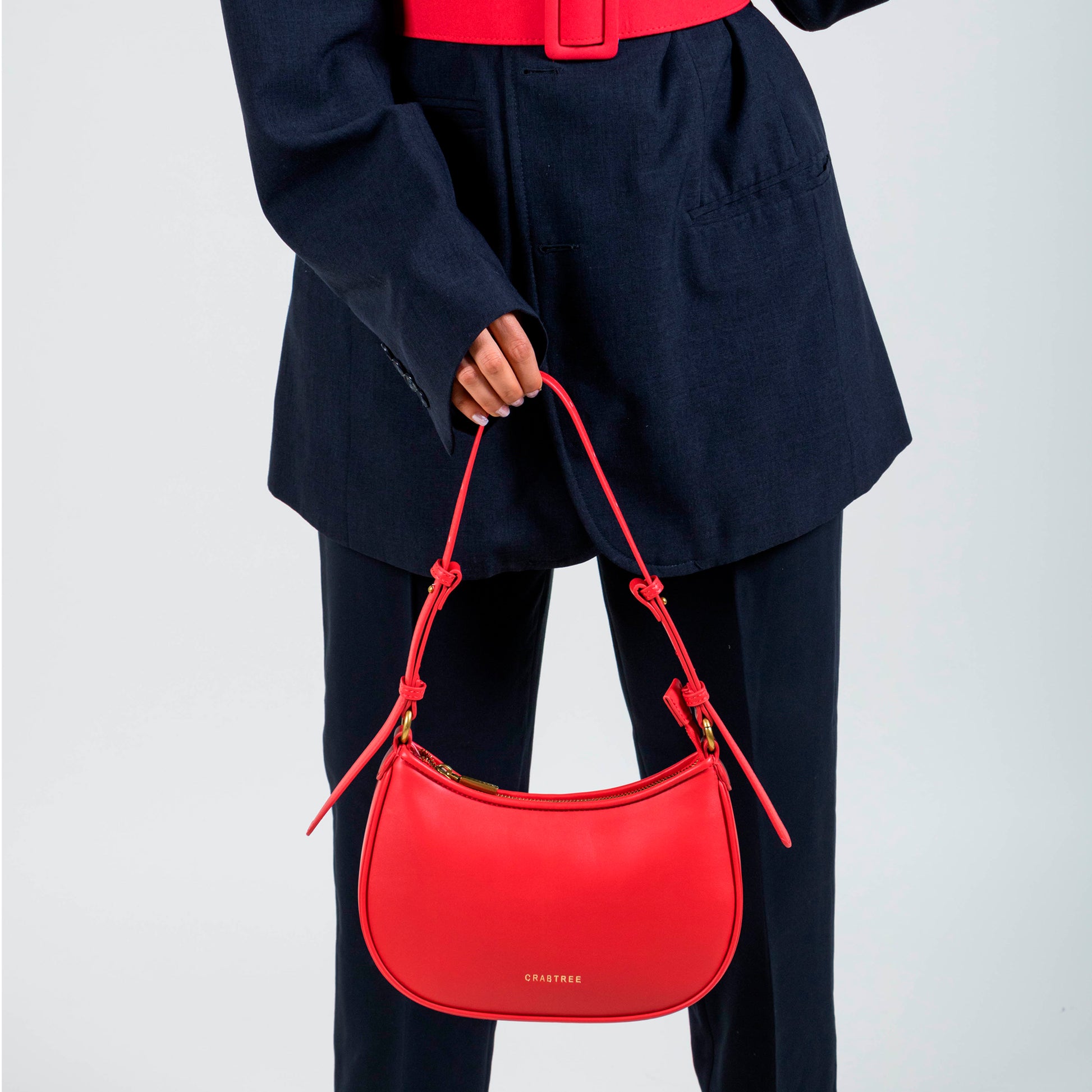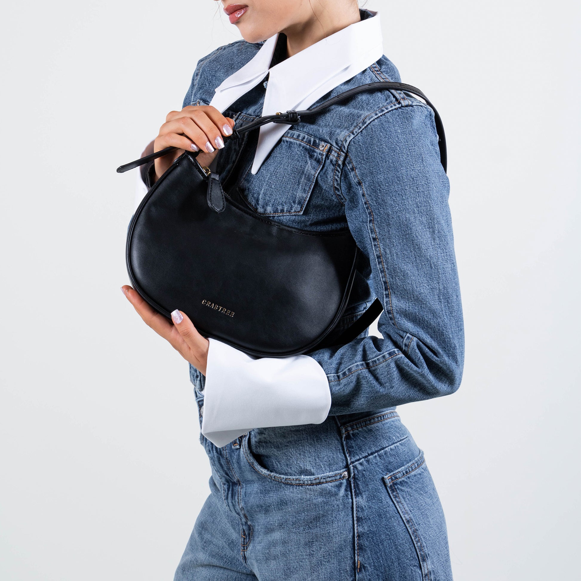Bolso pequeño de hombro con una asa ajustable y cierre en la parte superior.
