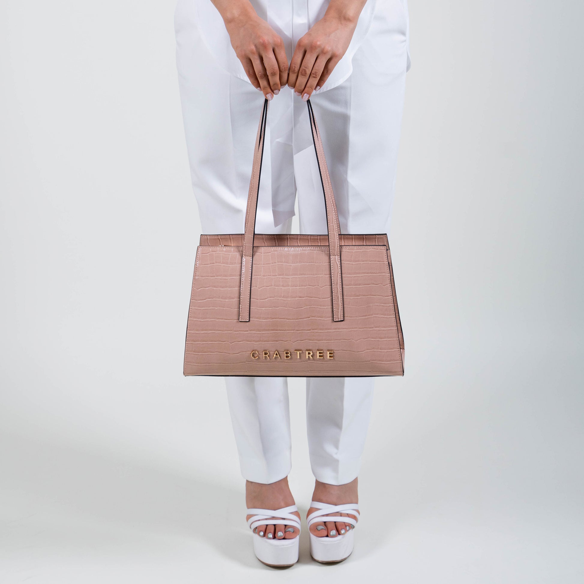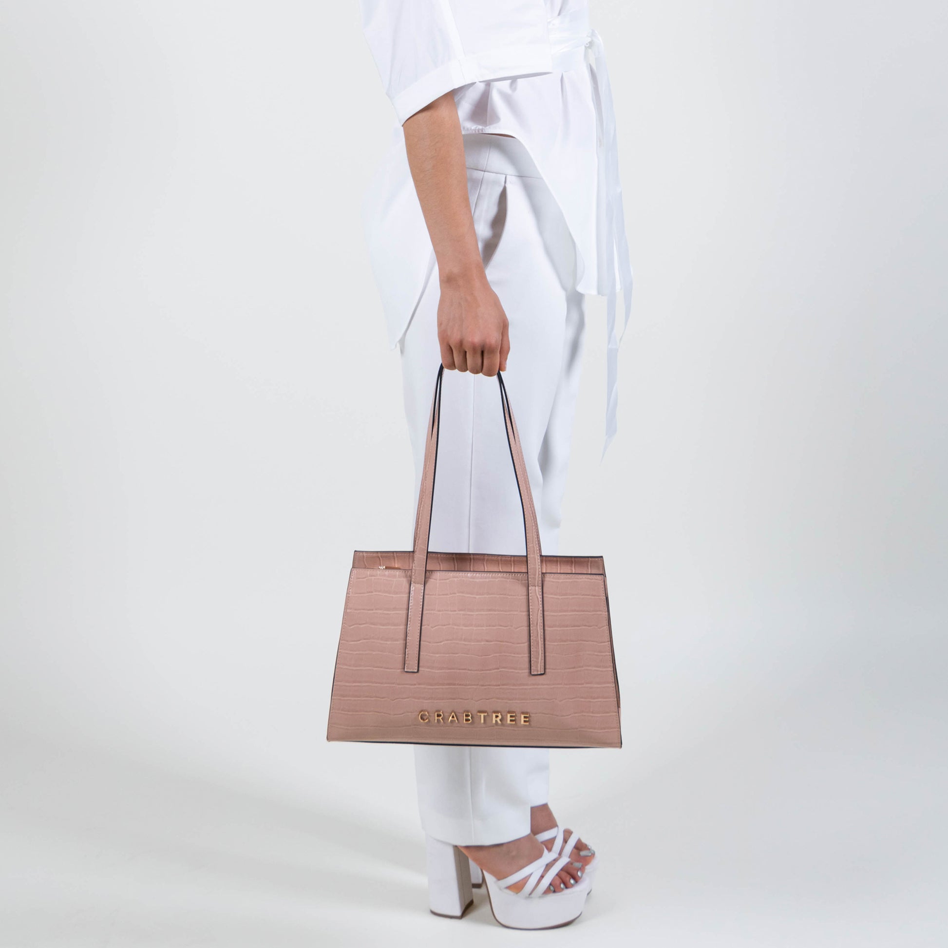 Bolso tote mediano de asa doble y cierre en la parte superior.