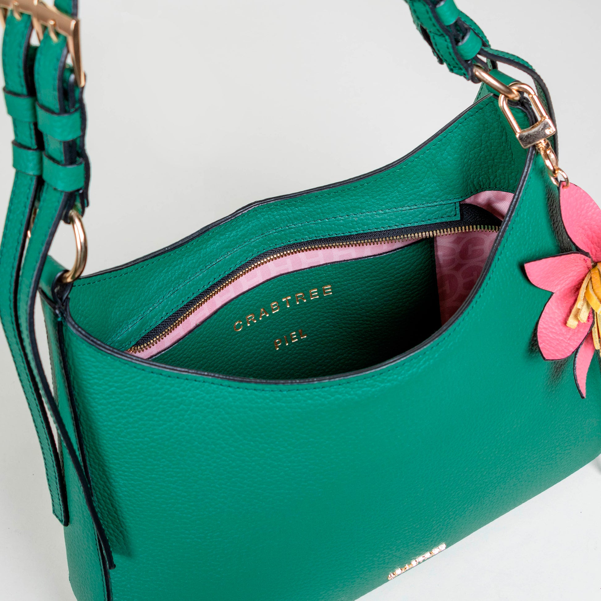 En los detalles estéticos tenemos un charm en forma de flor que resalta todo el diseño del bolso haciéndolo diferente y dando un toque de color sumando a la elegancia del bolso.